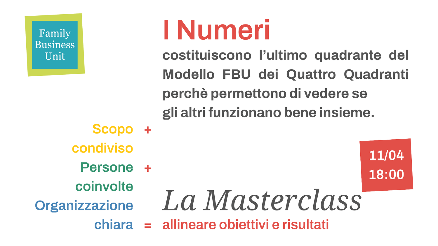 Nel modello FBU la parola Numeri non è tanto e solo un riferimento alla dimensione economica e finanziaria della famiglia e dell’impresa. Parlare di numeri vuol dire definire obiettivi chiari e condivisi, in modo da focalizzarsi su risultati chiave per dare concretezza all’azione.